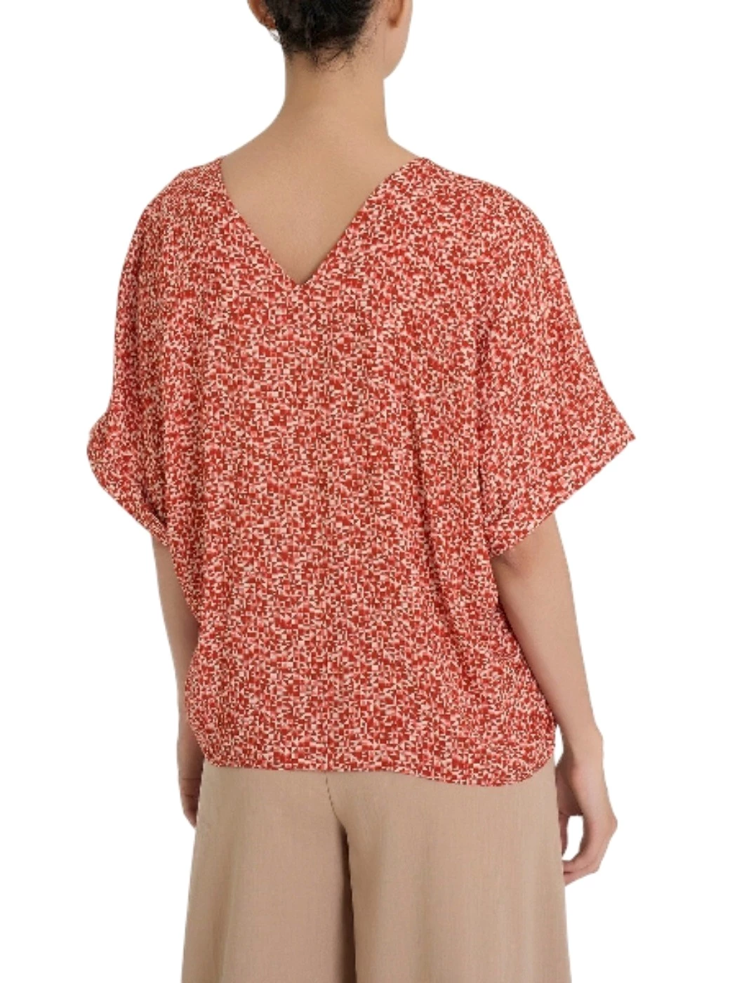 Blusa Ragno, con scollo a v e con manica corta a kimono.